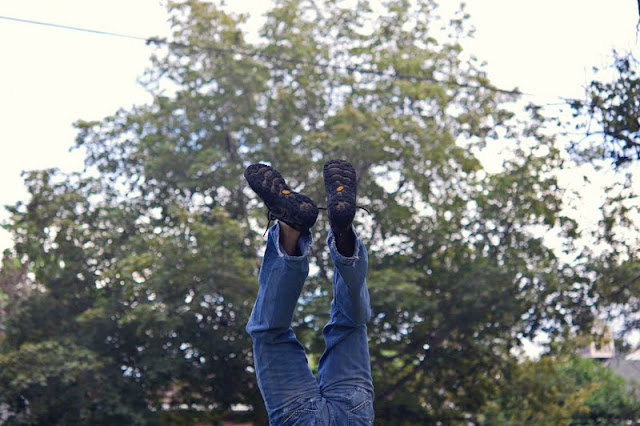 Practicing handstands. Their foot technique is so different. I thought it amusing for some reason :)